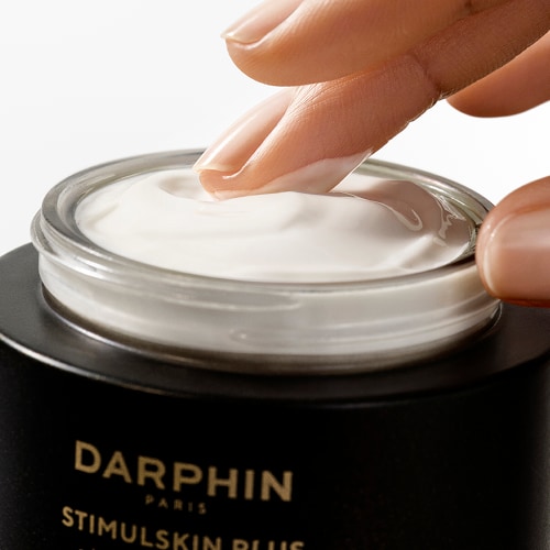 Le soir, enveloppez le visage et le cou d’une couche généreuse de Stimulskin Plus Sérumask Fermeté. Laissez poser 10 minutes. Si nécessaire, retirer l’excédent en massant à l’aide de notre Protocole Sculptant de Précision, une technique développée par les Experts Facialistes Darphin.